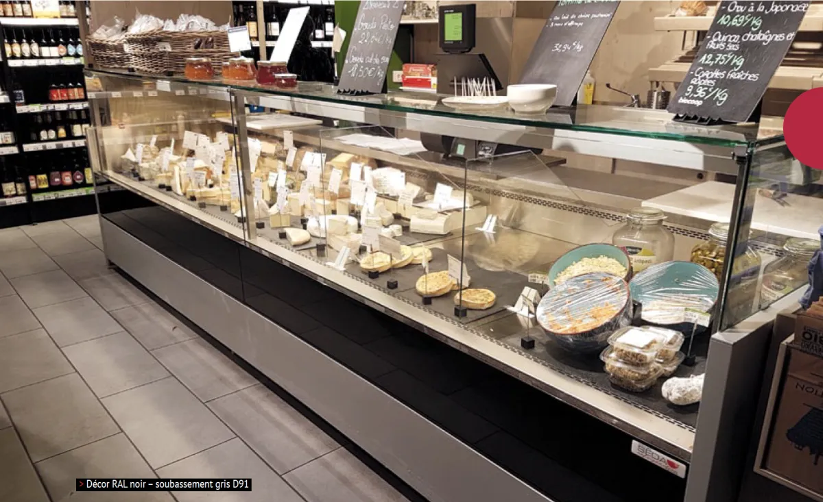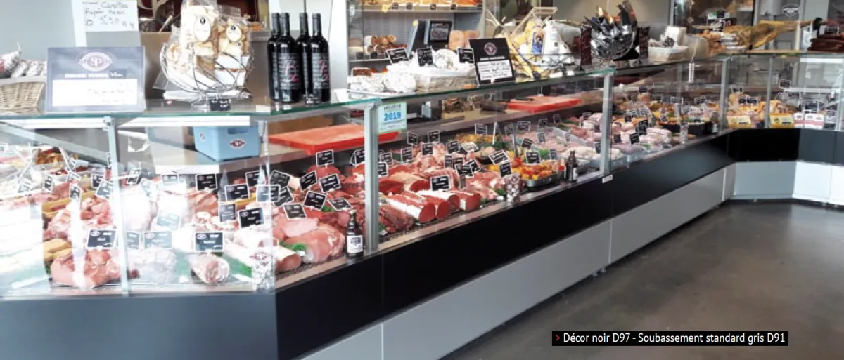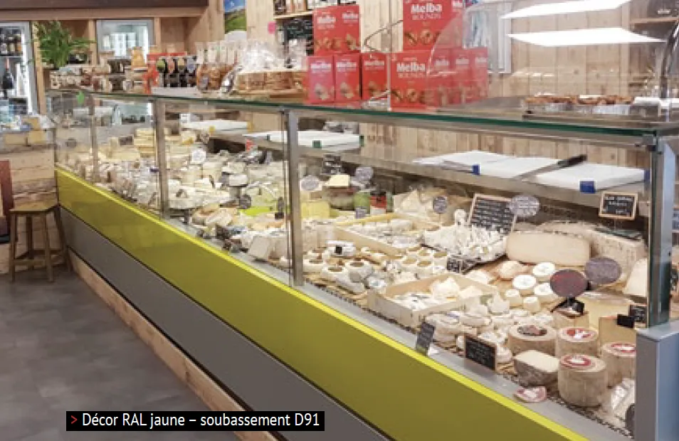 Plan d’exposition prof. 900 mm en acier laqué gris (Inox ou RAL Noir en option)